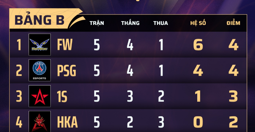 Với kết quả này, sẽ có 2 đại diện AOG là FPT và 1S tiến tới Tứ kết và 2 đại diện là SPN và SGP sẽ phải dừng chân tại vòng bảng ở mùa giải lần này.